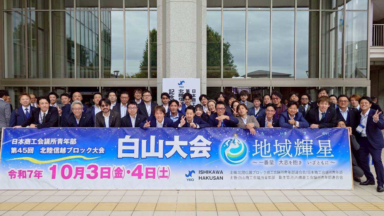 令和7年10月4日(土)、「日本商工会議所青年部 第45回北陸信越ブロック大会 白山大会」が石川県白山市にて開催され、富山YEGメンバーで参加をしてまいりました。