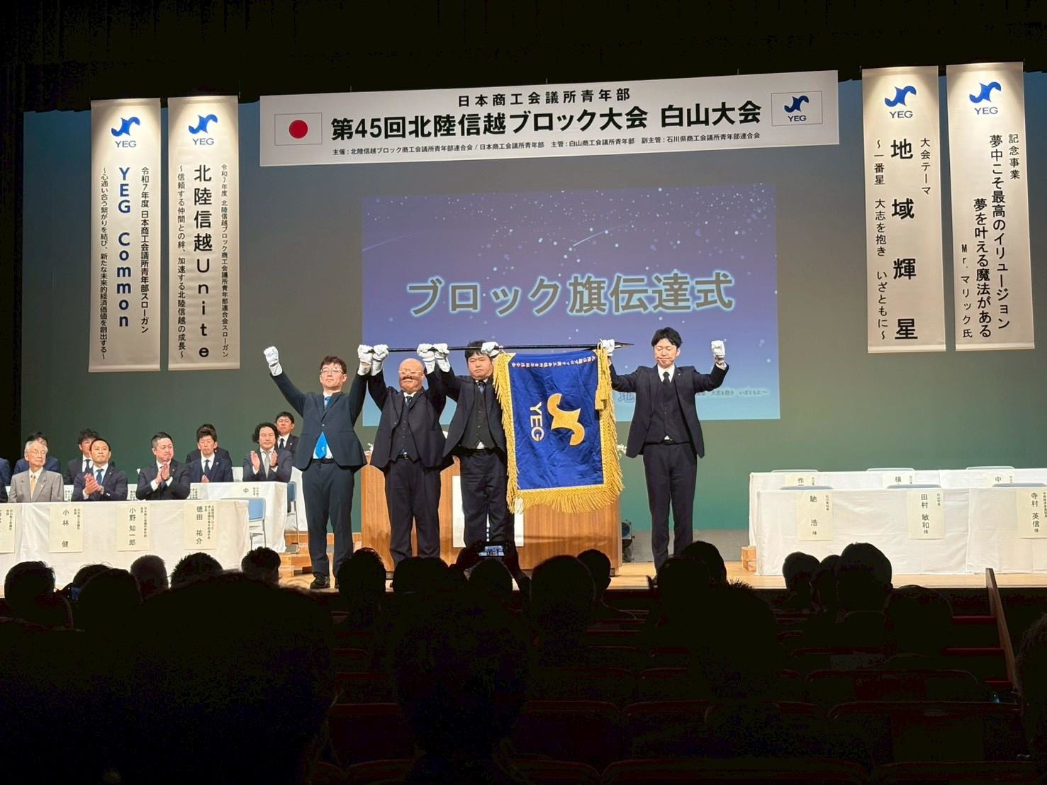 本大会では、主管である白山YEGが長年にわたり準備を重ねてきた集大成を地域の皆様との共創のもとで実現される姿に触れ、大会テーマ「地域輝星 ~一番星 大志を抱き いざともに~」に込められた想いを現地で体感することで、地域経済団体としての熱量を強く感じました。