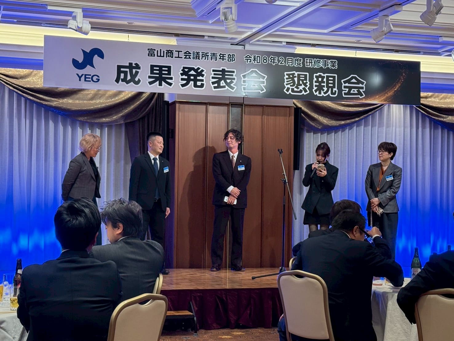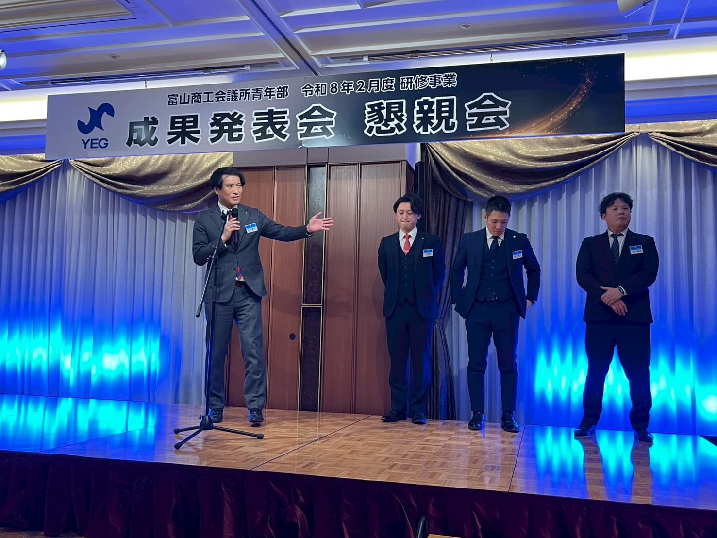成果発表会では、令和7年度の各委員会・局・室が1年間の活動を振り返り、基本方針の達成状況およびテーマに掲げた「シンカ(深化・進化・真価)」の成果について報告いたしました。4月のスタートから本日に至るまで、富山YEGが組織としてどのように成長し、地域社会や会員交流に足跡を残してきたのかを、現役会員全員で共有する貴重な機会となりました。
